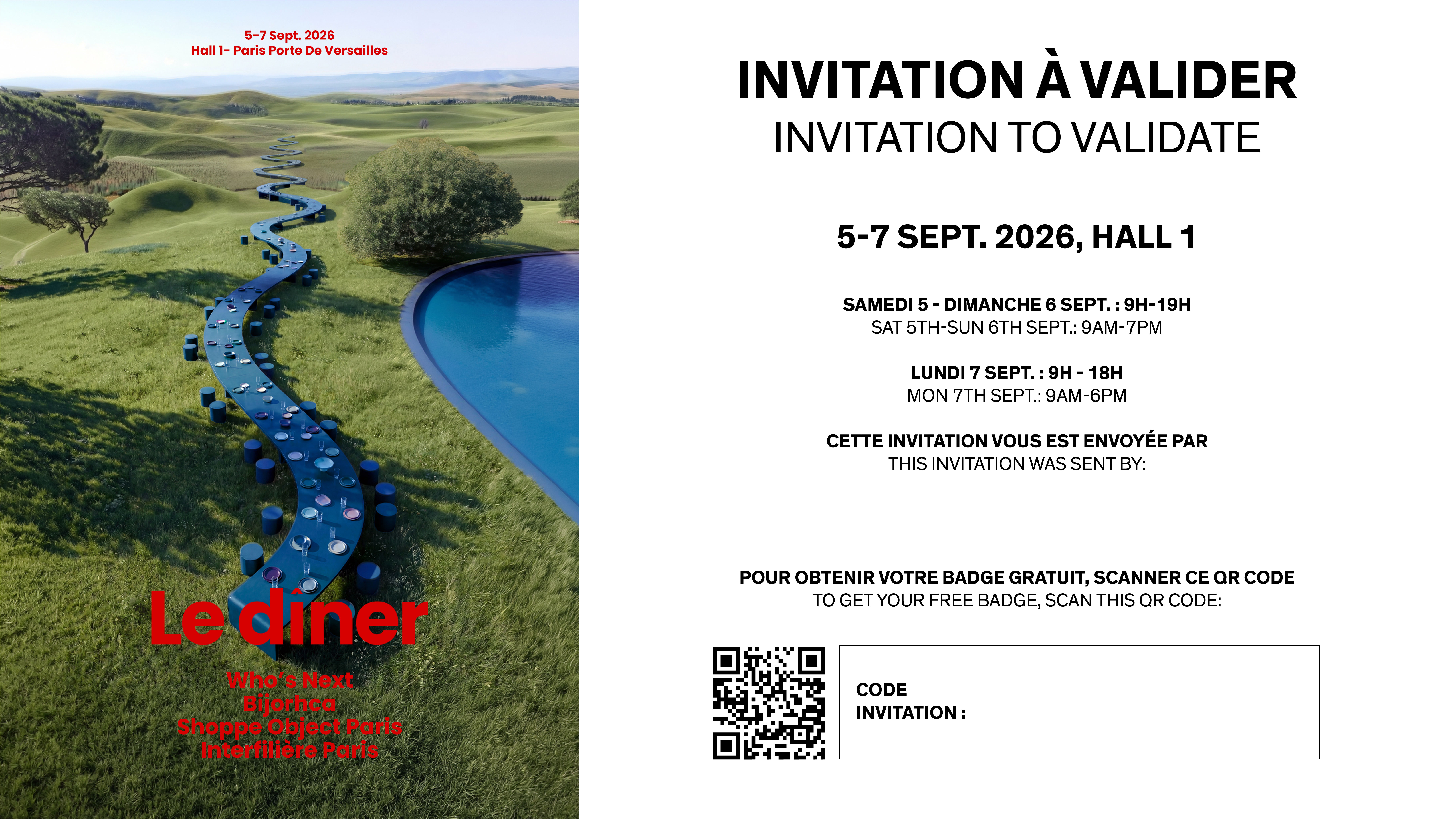 Attention - Cette invitation ne fait pas office de badge et doit être convertie depuis notre billetterie.